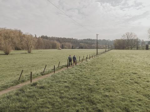 This walk, which starts from the centre of Jamioulx, begins by following the railway tracks towards the Hébert route, which is also known as ‘the Jamioulx wasteland’, to escape along small, wooded paths. Cross a small bridge that spans the Eau d’Heure, which flows further into the Sambre. After passing through the Bois de Marbaix forest, the route runs through orchards, fields and meadows with cattle and offers a beautiful panoramic view of the Eau d’Heure valley. The route also passes a site of biological interest known for its abundant flowers, insects, amphibians, birds and small mammals, such as rabbits and foxes.