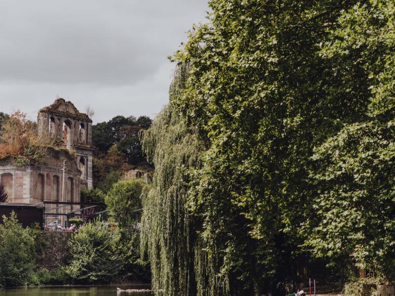 The walk leaves from the hamlet of Hourpes, which is where the blast furnaces were once operated and is a site worth visiting. Founded in the 17th century, the site is linked to the infancy of the metallurgical industry in Entre-Sambre-et-Meuse. Its château and workers’ houses seem lost at the heart of the countryside. The walk will take you to the Aulne abbey site where you can relax pleasantly in riverside cafés and restaurants along the water. Walking past the abbey, you can’t miss the magnificent Gothic transept. Return on the RAVeL along the Sambre river where the water level is still regulated by manual locks.