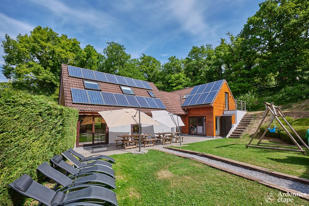 Welcome to this beautiful chalet in Beauraing , ideal for families with children looking for an unforgettable holiday in the Ardennes . This luxurious and modern holiday home accommodates 16 people and is perfectly equipped to meet all your needs. With 6 bedrooms and 4 bathrooms , there is enough space for everyone to feel comfortable. The private garden is a paradise for...