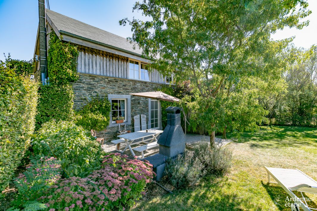 This cosy, 4-star holiday cottage located in the village of Jehonville (Bertrix) in the Province of Luxembourg of Belgium can accommodate up to eight people. Prepare to fall in love with the charm and comfort of its interior. This is a holiday house that will make you feel right at home. The four bedrooms share two bathrooms that both comprise a bathtub, a sink and a toilet. The wooden and stone materials that are characteristic of this self-catering accomodation help to create a warm and convivial atmosphere.