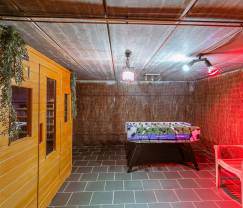 The basement of your holiday cottage has been rearranged into a magnificent relaxation area with deckchairs and an infrared sauna. A magical place for the perfect getaway evening where you can comfortably sit in your living room (TV and wireless internet connection) or on your furnished terrace on pleasant summer evenings. Take advantage of the superb view whilst your children play badminton or boules.