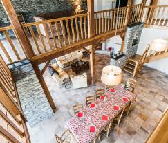 The mezzanine over the living area has a beautiful leisure space with a TV room, library and games area. Kids love it and it’s very practical for being together but each having your own activities, without treading on each other’s toes.