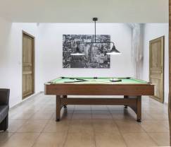 On the first floor, you will find a second living room with TV and Internet connection; a games corner with billiards table; and the five bedrooms, which are also welcoming, nicely decorated and colourful. The house also has four bathrooms.