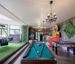 Groups will appreciate this house where they can get together while also enjoying the outbuildings for some privacy. Several small rooms (with internet), a dining room, a games room with billiards, table football, air hockey and numerous games consoles for young and old alike: a real amusement park!