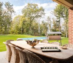 The living room is an oasis of comfort with an open fireplace and a wood stove, perfect for cozy evenings. For the little ones, there are children's games and 2 baby cots available, as well as 3 high chairs. The playroom with foosball table and ping pong table offers hours of fun for young and old. Outside awaits a private garden with outdoor pool, where you can relax on the terrace with view. The barbecue and garden furniture complete the picture for a delightful summer day.