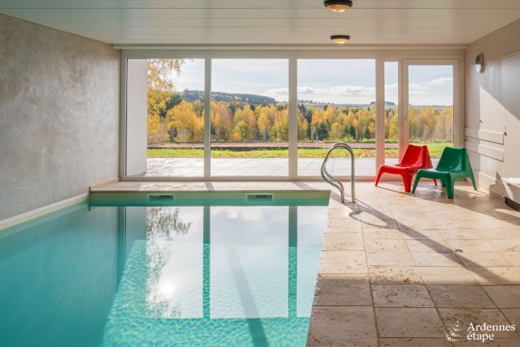 For relaxation enthusiasts, the villa features an indoor pool and a relaxation area including an infrared cabin. These facilities are perfect for recharging after a day of exploring the magnificent Ardennes region. The wood stove adds a warm and friendly touch to evenings spent in the spacious living room.