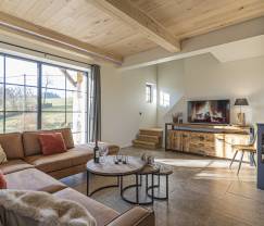 Want to spend some quality time with family and/or friends? This holiday home is the perfect place to do just that! The cosy, contemporary living room, themodern kitchen with a rustic vibe and the attractive dining room flow effortlessly into one another. The result is an exceptionally comfortable living space where you can enjoy good food and goof company while experimenting in the kitchen with delicious regional products or simply relaxing by the fireplace. Our favourite? The terrace with breath-taking views of the valley and the wonderful swimming pool with cosy sitting area. There’s also a barbecue, perfect for enjoying an evening meal together outdoors any time of year. We’re also fans of the wellness facilities – an indoor infrared sauna and outdoor jacuzzi!